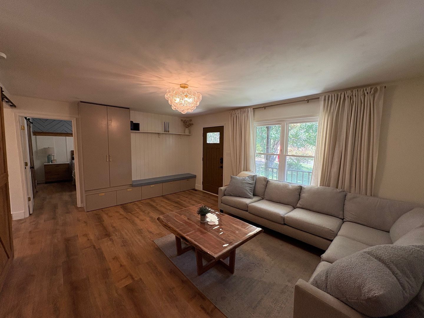 This well-maintained 3-bedroom, 2-bath home is situated on 1.05 acres, offering a peaceful, private setting just minutes from I-24. Fully renovated in 2024, the home features hardwood flooring throughout and a bright, inviting kitchen filled with natural light equipped with a pantry for added storage. Featuring extra touches, to include accent walls that add character and charm. Ample closet space is found throughout the home, along with a dedicated utility room for convenience. Outdoor features include a large fenced backyard with a fire pit, a wood deck ideal for entertaining, and a covered front porch surrounded by mature trees.